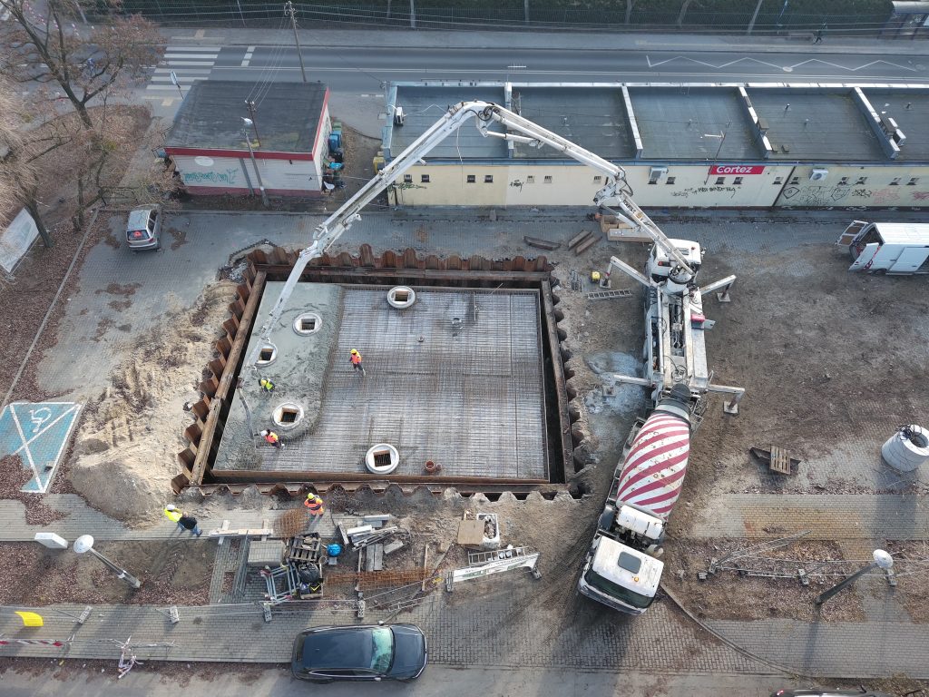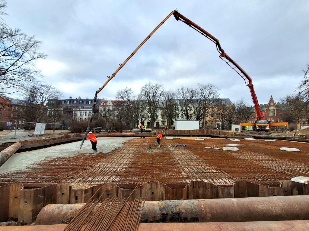 Realizacja projektu “Bydgoszcz zielono-niebieska” trwa także w innych częściach miasta. Dzięki dobrym warunkom pogodowym, w ciągu ostatnich dni odbywało się betonowanie zbiorników retencyjnych na ul. Połczyńskiej, Świętej Trójcy, ul. Konopnickiej oraz Skwerze Leszka Białego.